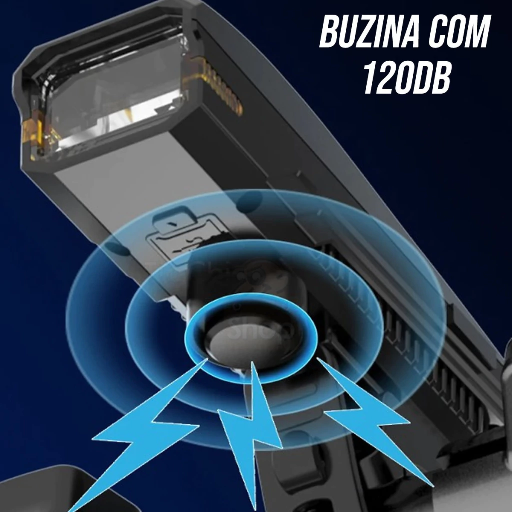 Possui buzina integrada de 120db
