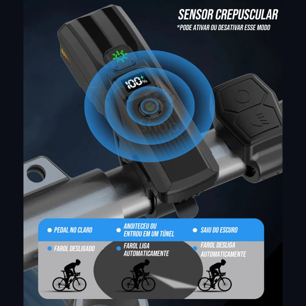 Farol bike possui medidor de bateria digital