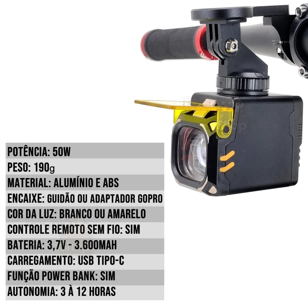 Acompanha suporte para fixar no guidão e acompanha adaptador