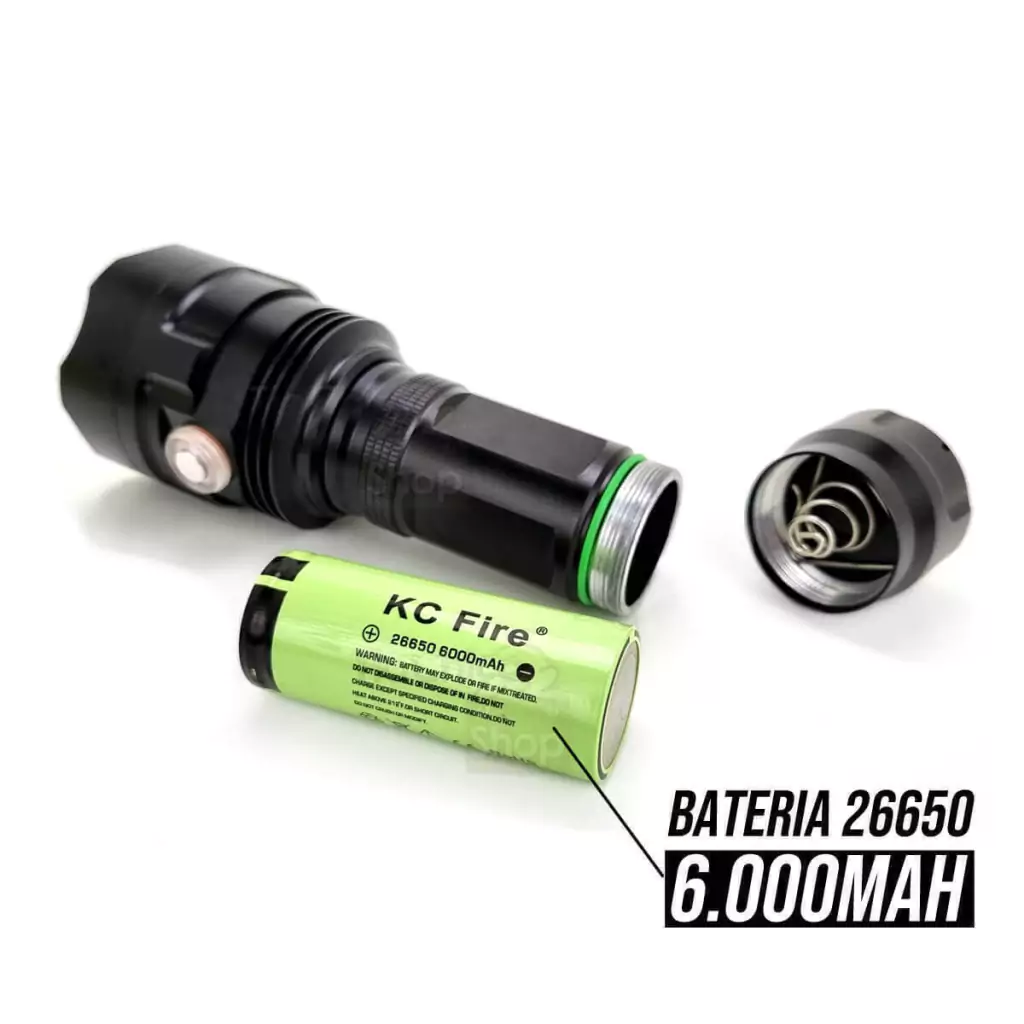 Alimentado por 1 bateria modelo 26650 com 6.000mAh
