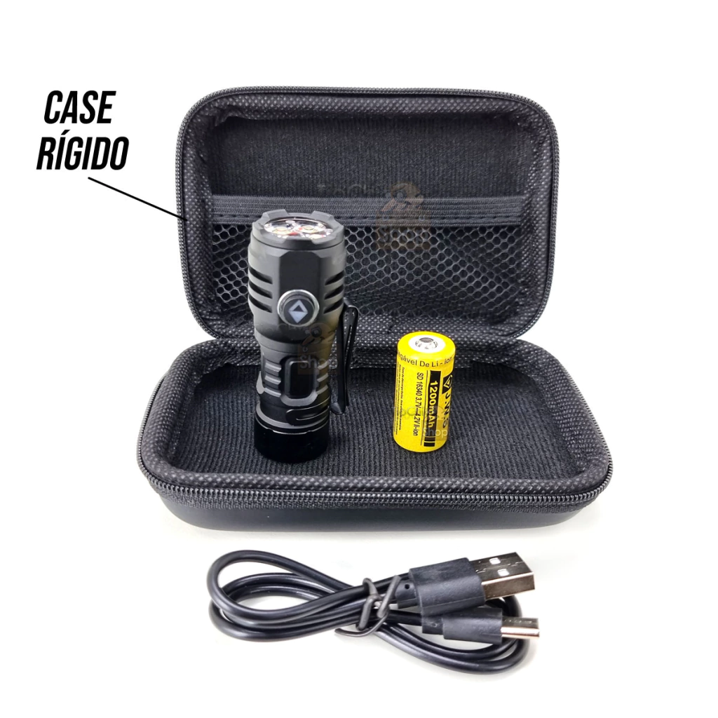 Acompanha um case rígido para guardar a lanterna